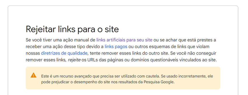 - Utilizar a ferramenta de rejeição do Google: Se não conseguir que as ligações sejam removidas, pode utilizar a ferramenta de rejeição do Google para informar o Google que não deseja que determinadas ligações sejam levadas em conta na avaliação do seu site.