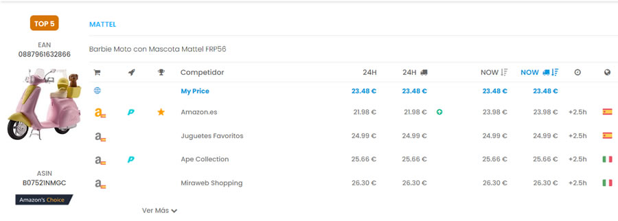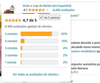 Ou seja, por exemplo, no brinquedo da imagem de ecrã acima, esse produto é Amazon Choice para a pesquisa "acessórios barbie". Isto significa que quando um utilizador faz uma pesquisa na Amazon, esse produto é um dos primeiros produtos apresentados para essa pesquisa, mas para outra pesquisa semelhante pode ser outro.
